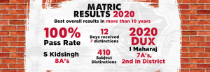 We are very pleased to share the 2020 National Senior Certificate results.  The 6th Form class of 2020 have done themselves and their school extremely proud, producing the best overall results at the top level in over 10 years. A total of 13 boys achieved 7 As or more, which is an incredible achievement under extremely difficult circumstances and we congratulate them warmly. Our sincere appreciation and thanks to the dedicated staff who supported these young men so completely.
