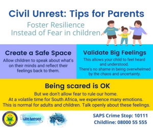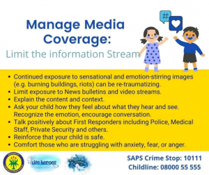 The following have also been provided to assist people with managing fear and anxiety from the unrest, especially resulting from exposure to the media, during this time: