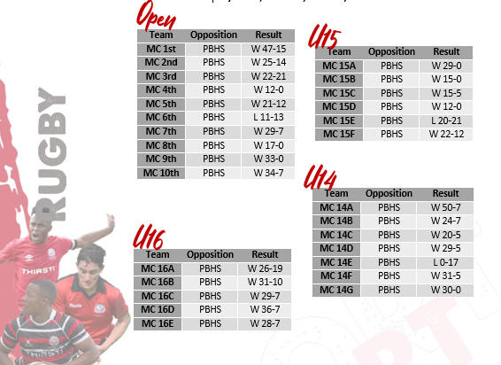 There were also excellent results for College’s other sporting and cultural teams against PBHS.
