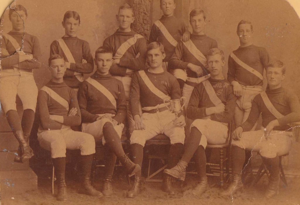 College won and (as show in the photograph below) – that triumphant team was captained by Arthur Hime seen holding the Raw Cup itself. This is College’s oldest known team photo.