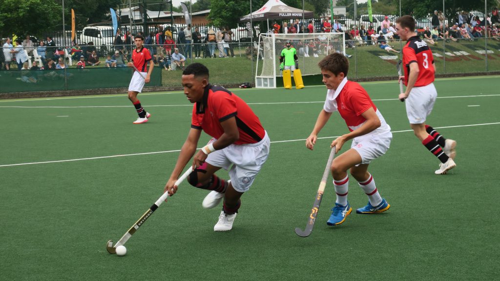 Some fiery words were said at the final quarter break, and College boys sprang into action and upped the pace. A nervous moment saw Michaelhouse earn their first penalty corner of the match, after a sloppy turnover in midfield led to a circle entry. However, it was easily saved by Nic Holmes. The resulting long corner saw Konigkramer turn the ball over just outside his circle and launch a great counterattack which led to the opening goal. He burst down the line and Dlamini did well to get ahead of him to receive the ball, eliminate a defender and find Konigkramer in the circle, who passed the ball to Siwa Sithembu, who made no mistake with his flick over the goalkeeper. This made Michaelhosue surge forward and they earned themselves another penalty corner, however this would be to their demise again. Awande Mthalane intercepted the ball in the circle and quickly rolled the ball outside to start another counterattack. Sithembu found Konigkramer who played a superb diagonal aerial ball across the field to Tai Fulton waiting outside the circle. The hunger and desire from Dlamini was evident as he ran the length of the field to find himself on the far post and Fulton picked him out with a pinpoint pass as he deflected it in to make it 2-0 to the home team.